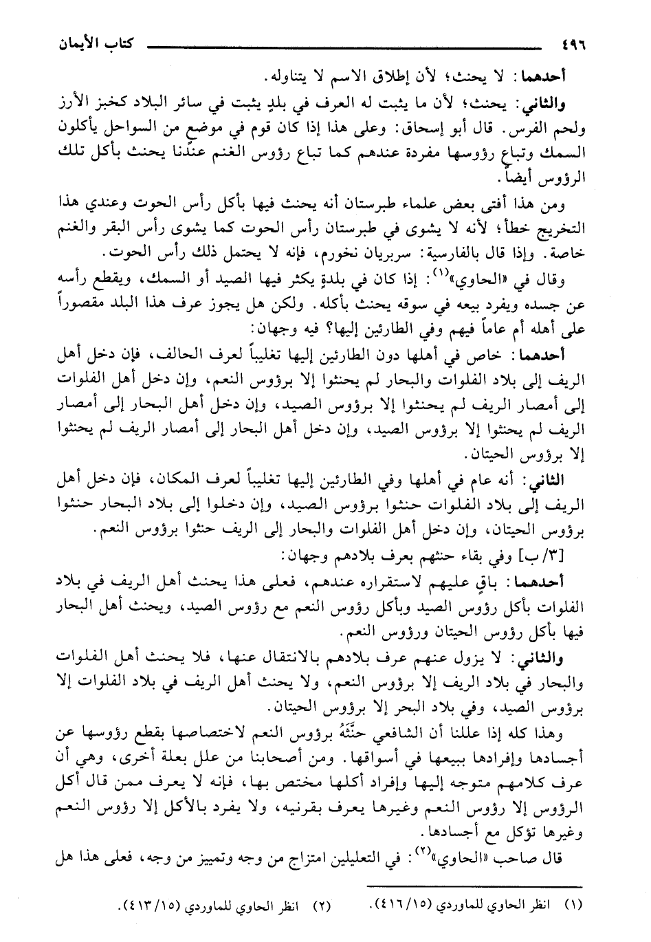 ومن هذا أفتى بعض علماء طبرستان أنه يحنث فيها بأكل رأس الحوت وعندي هذا التخريج خطأ؛ لأنه لا يشوى في طبرستان رأس الحوت كما يشوى رأس البقر والغنم خاصة. وإذا قال بالفارسية: سربريان نخورم، فإنه لا يحتمل ذلك رأس الحوت.