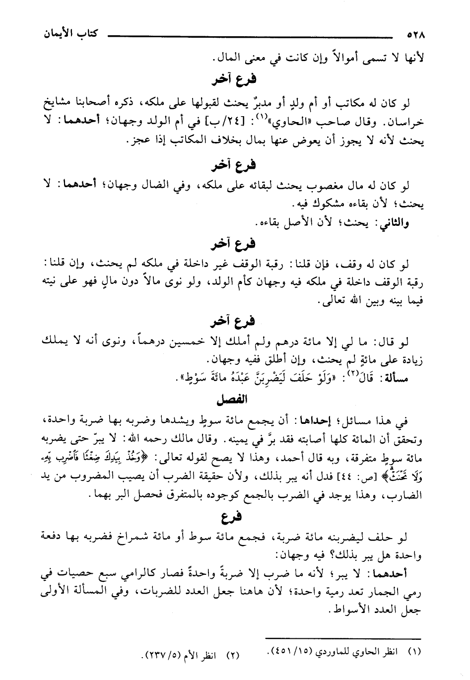 لو حلف ليضربنه مائة ضربة، فجمع مائة سوط أو مائة شمراخ فضربه بها دفعة واحدة هل يبر بذلك؟ فيه وجهان: