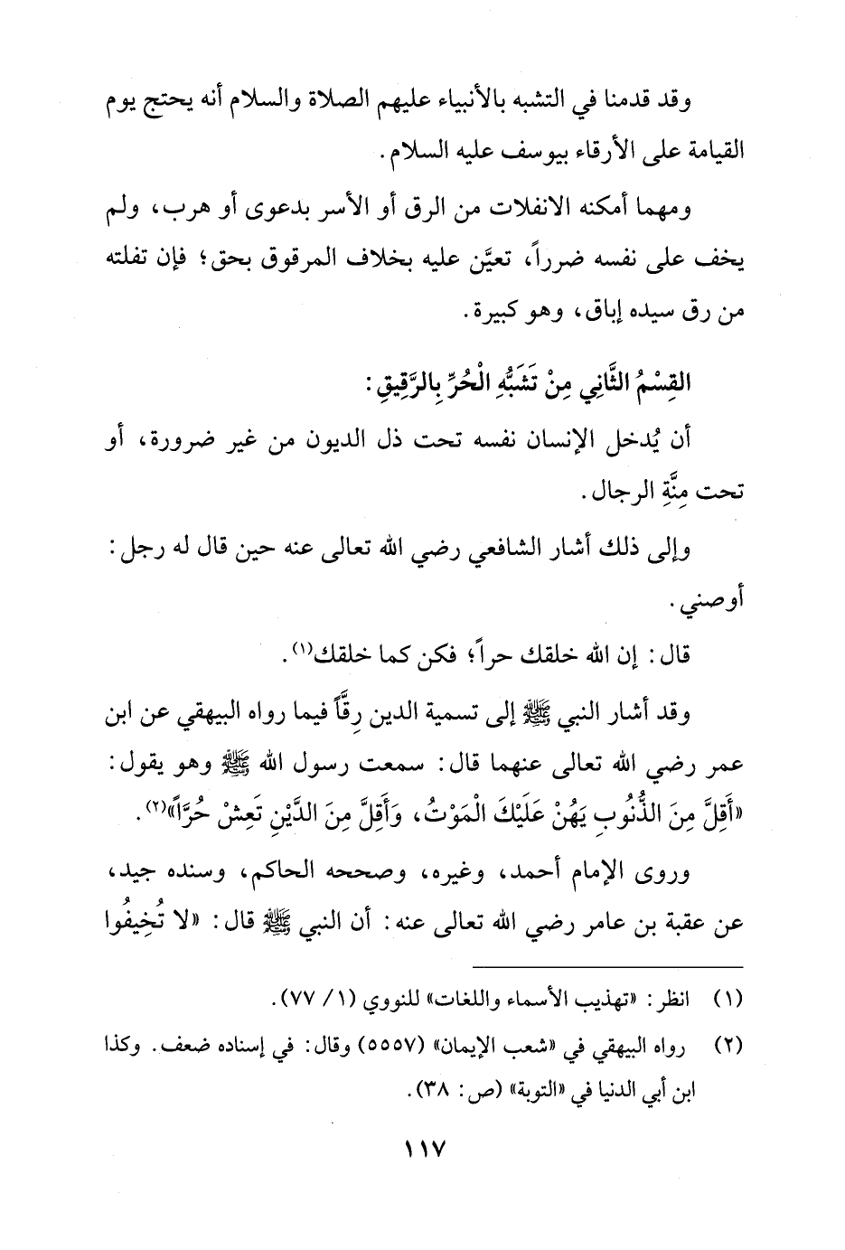 القِسْمُ الثَّانِي مِنْ تَشَبُّهِ الْحُرِّ بِالرَّقِيقِ:
