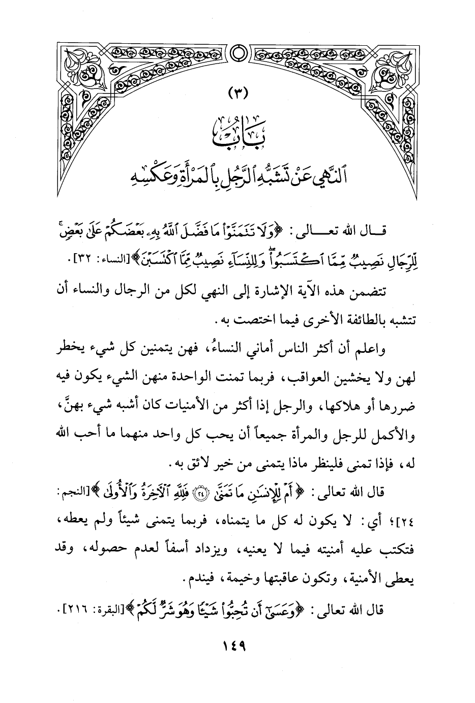 (3) بَابُ النَّهي عَنْ تَشَبُّهِ الرَّجُلِ بِالمَرْأَةِ وَعَكْسِهِ