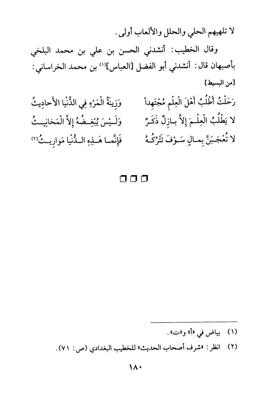 (¬2) انظر: "شرف أصحاب الحديث" للخطيب البغدادي (ص: 71).