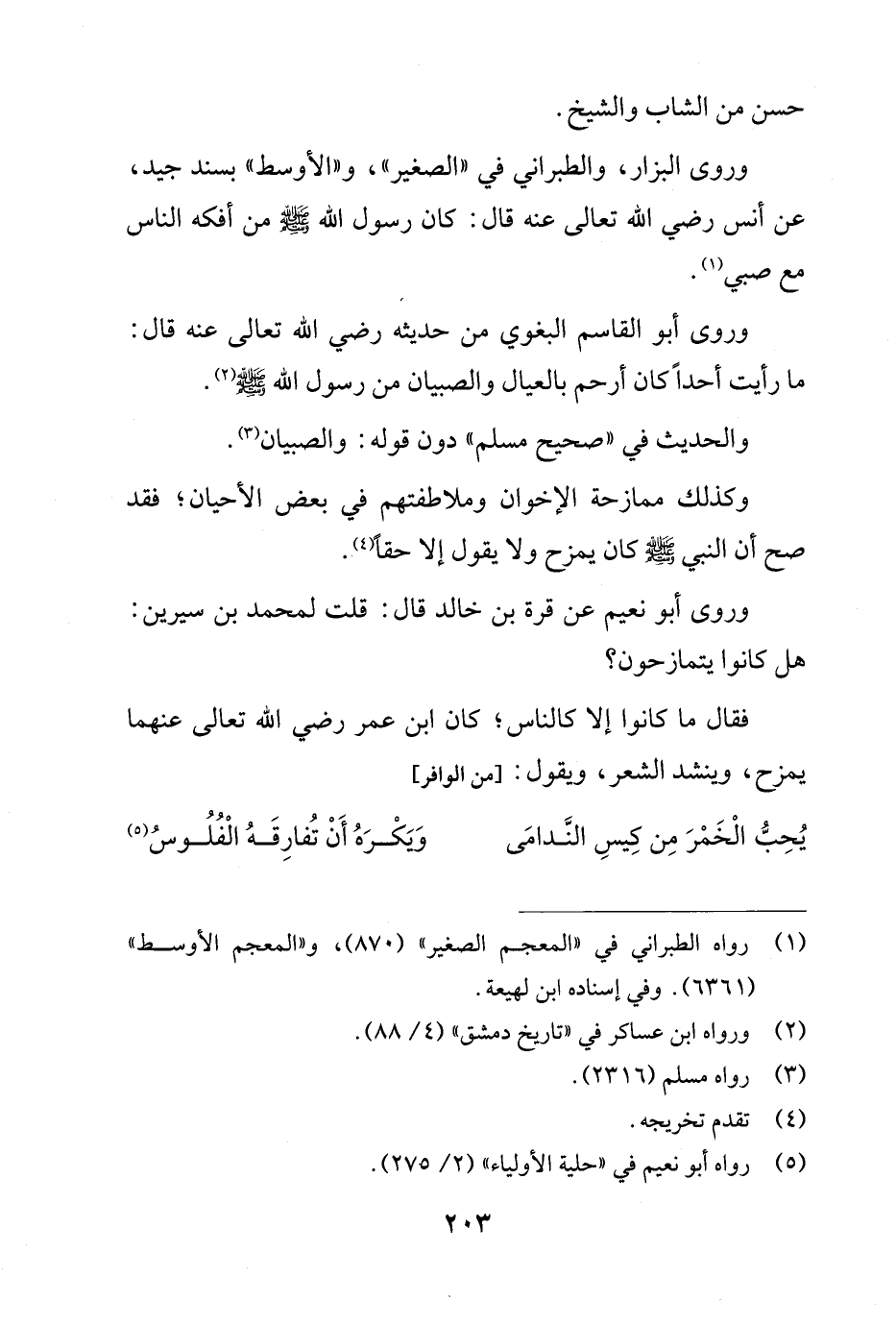 وكذلك ممازحة الإخوان وملاطفتهم في بعض الأحيان؛ فقد صح أن النبي - صلى الله عليه وسلم - كان يمزح ولا يقول إلا حقًا (¬4).