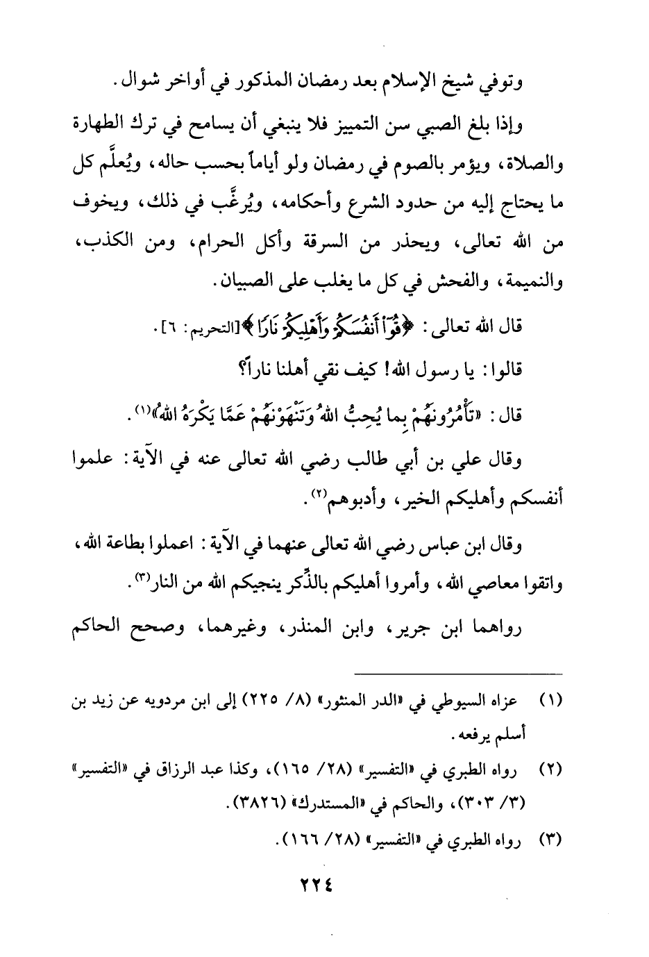 قال الله تعالى: {قُوا أَنْفُسَكُمْ وَأَهْلِيكُمْ نَارًا} [التحريم: 6].