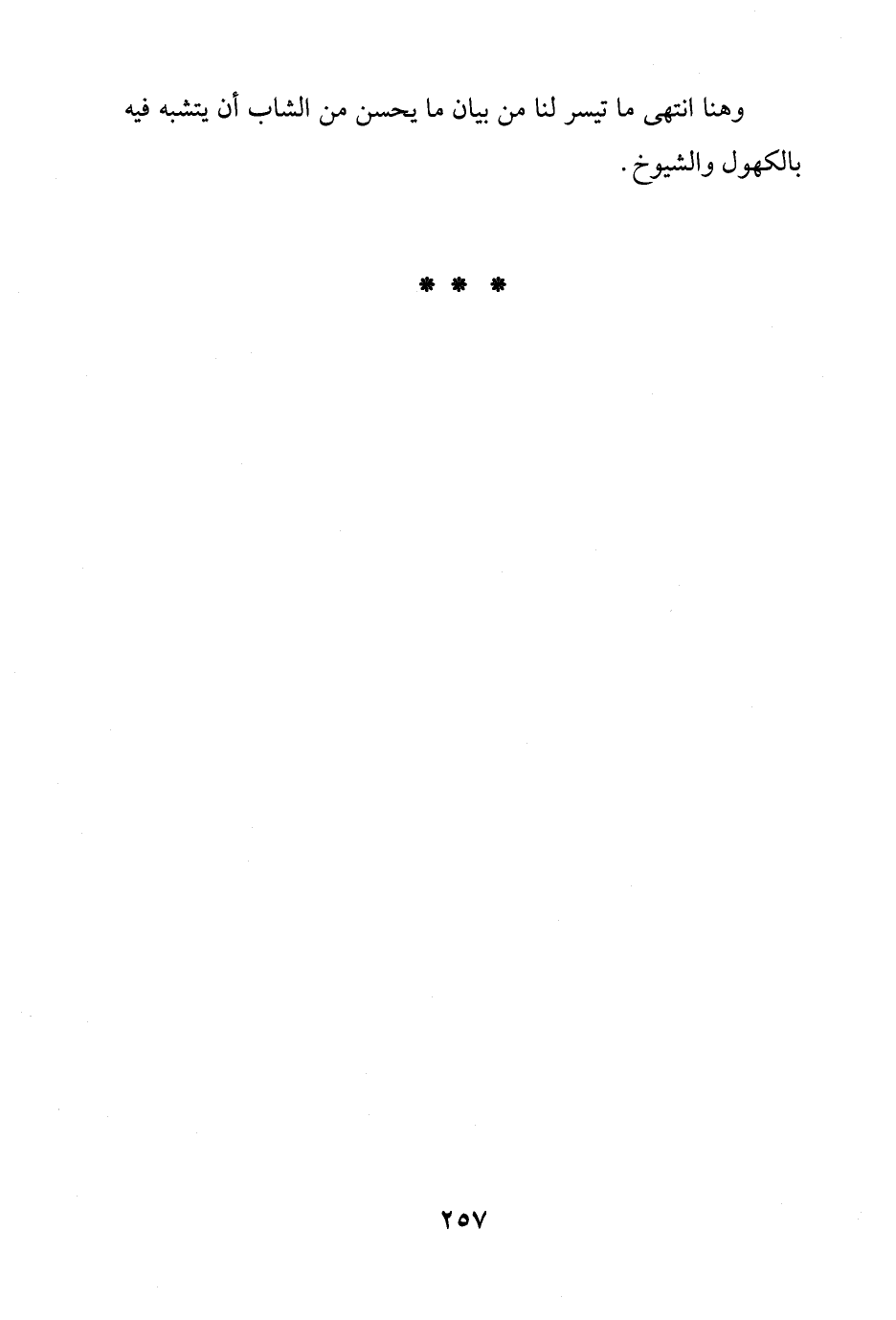 وهنا انتهى ما تيسر لنا من بيان ما يحسن من الشاب أن يتشبه فيه بالكهول والشيوخ.