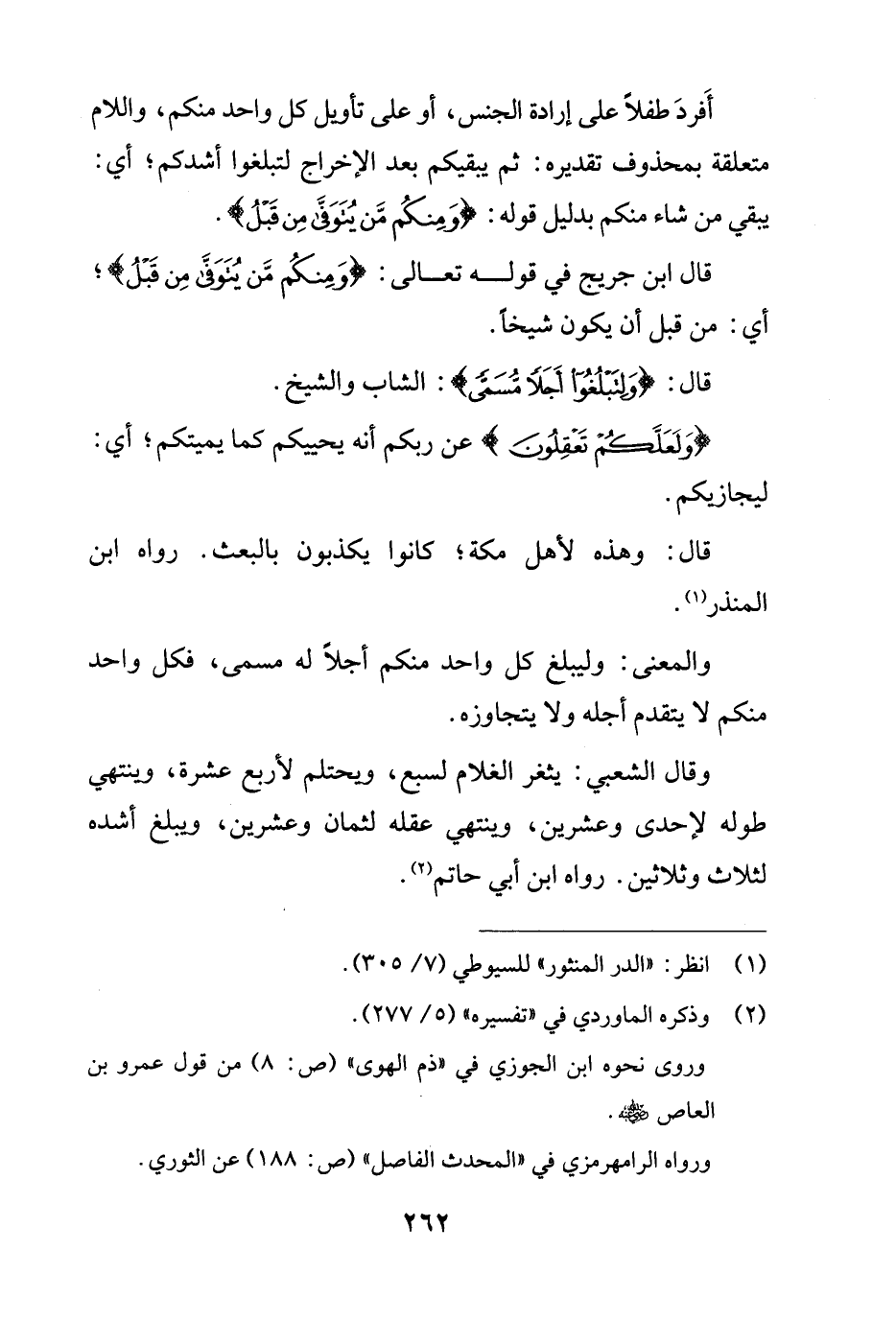 قال ابن جريج في قوله تعالى: {وَمِنْكُمْ مَنْ يُتَوَفَّى مِنْ قَبْلُ}؛ أي: من قبل أن يكون شيخاً.
