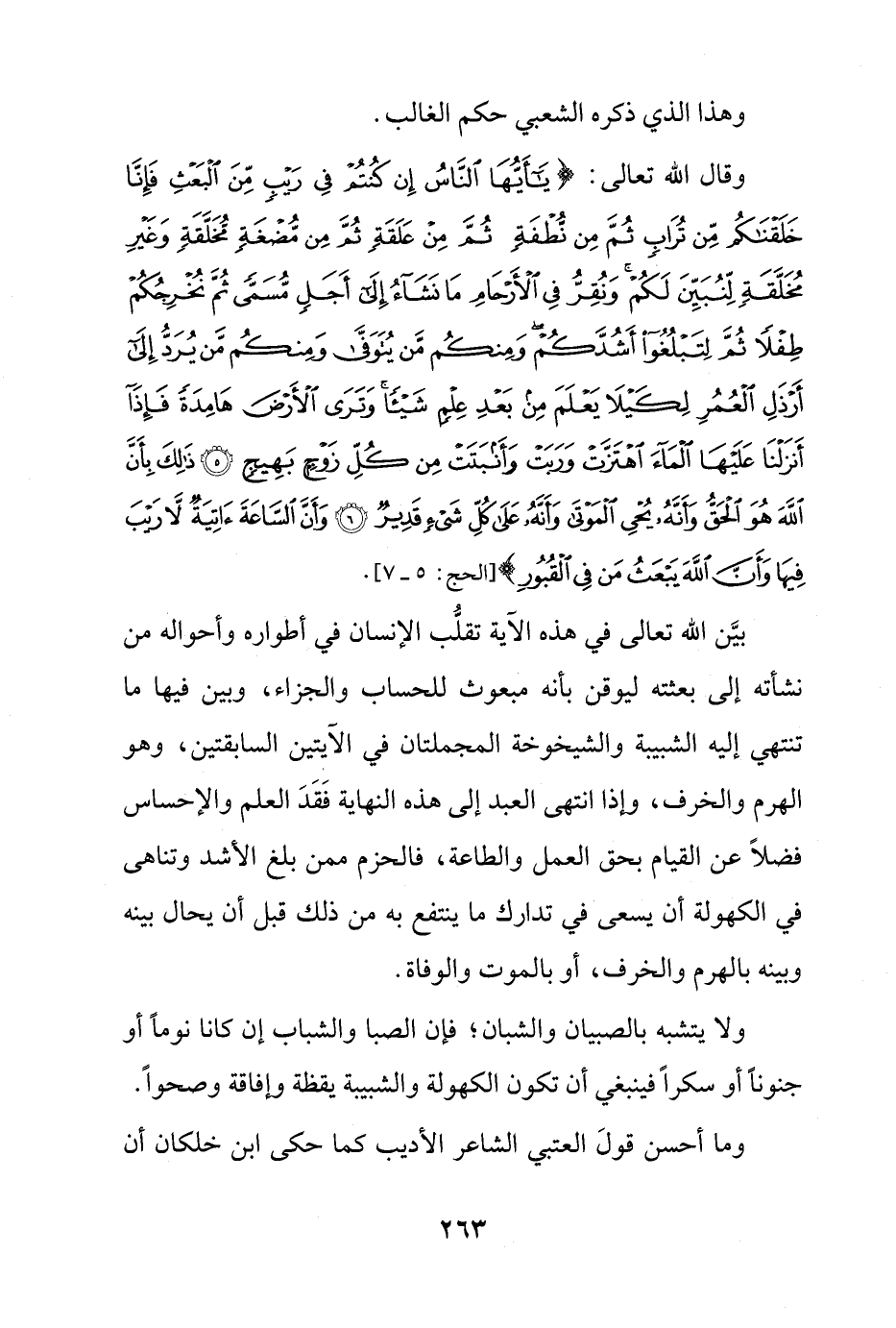 وقال الله تعالى: {يَا أَيُّهَا النَّاسُ إِنْ كُنْتُمْ فِي رَيْبٍ مِنَ الْبَعْثِ فَإِنَّا خَلَقْنَاكُمْ مِنْ تُرَابٍ ثُمَّ مِنْ نُطْفَةٍ ثُمَّ مِنْ عَلَقَةٍ ثُمَّ مِنْ مُضْغَةٍ مُخَلَّقَةٍ وَغَيْرِ مُخَلَّقَةٍ لِنُبَيِّنَ لَكُمْ وَنُقِرُّ فِي الْأَرْحَامِ مَا نَشَاءُ إِلَى أَجَلٍ مُسَمًّى ثُمَّ نُخْرِجُكُمْ طِفْلًا ثُمَّ لِتَبْلُغُوا أَشُدَّكُمْ وَمِنْكُمْ مَنْ يُتَوَفَّى وَمِنْكُمْ مَنْ يُرَدُّ إِلَى أَرْذَلِ الْعُمُرِ لِكَيْلَا يَعْلَمَ مِنْ بَعْدِ عِلْمٍ شَيْئًا وَتَرَى الْأَرْضَ هَامِدَةً فَإِذَا أَنْزَلْنَا عَلَيْهَا الْمَاءَ اهْتَزَّتْ وَرَبَتْ وَأَنْبَتَتْ مِنْ كُلِّ زَوْجٍ بَهِيجٍ (5) ذَلِكَ بِأَنَّ اللَّهَ هُوَ الْحَقُّ وَأَنَّهُ يُحْيِ الْمَوْتَى وَأَنَّهُ عَلَى كُلِّ شَيْءٍ قَدِيرٌ (6) وَأَنَّ السَّاعَةَ آتِيَةٌ لَا رَيْبَ فِيهَا وَأَنَّ اللَّهَ يَبْعَثُ مَنْ فِي الْقُبُورِ} [الحج: 5 - 7].