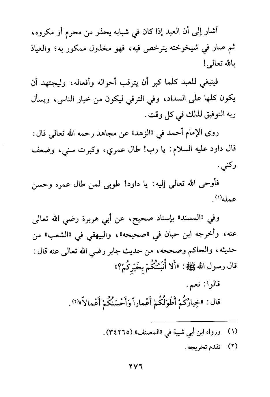 قال: "خِيارُكُمْ أَطْوَلُكُمْ أَعْماراً وَأَحْسَنُكُمْ أَعْمالاً" (¬2).