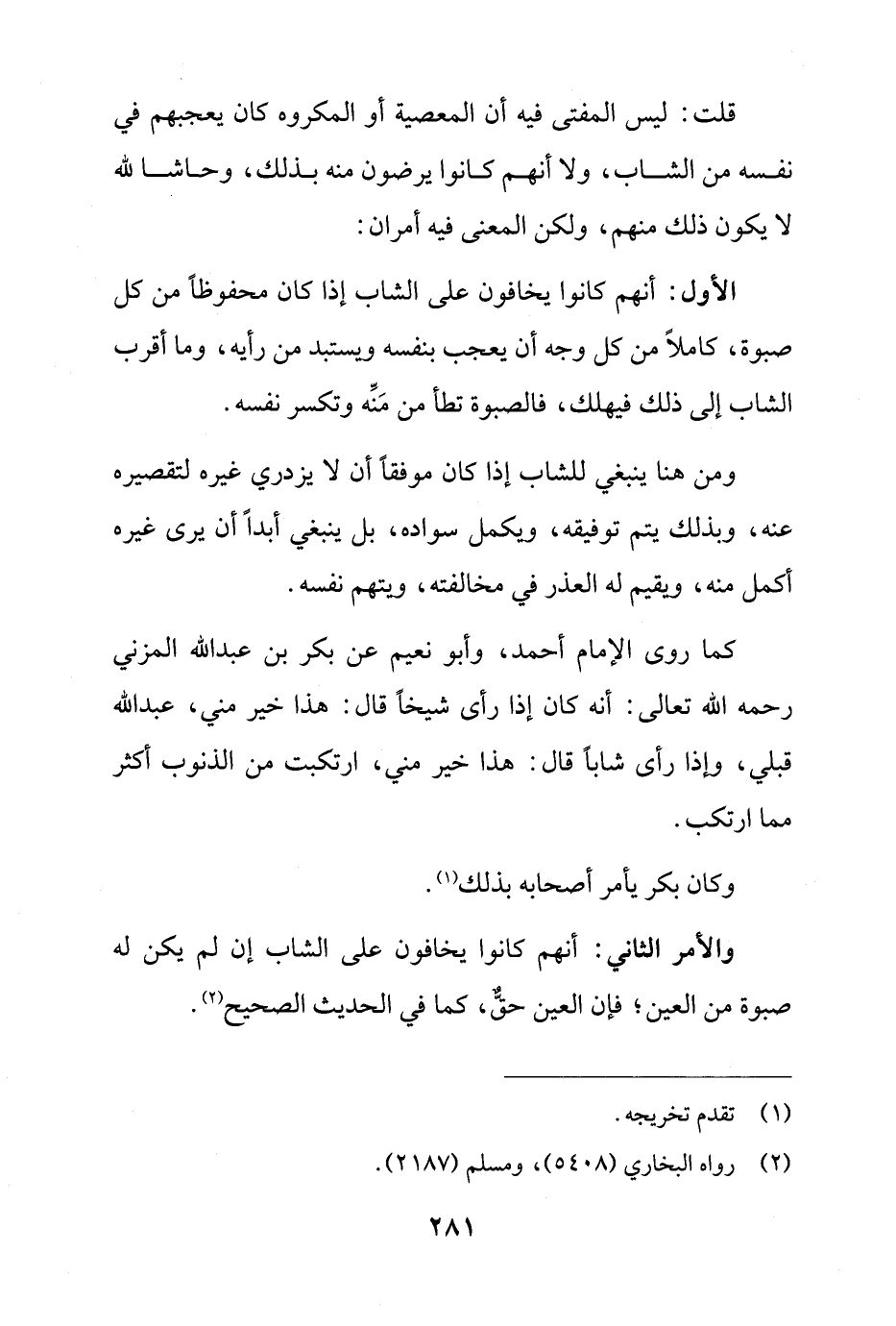 والأمر الثاني: أنهم كانوا يخافون على الشاب إن لم يكن له صبوة من العين؛ فإن العين حقٌّ، كما في الحديث الصحيح (¬2).
