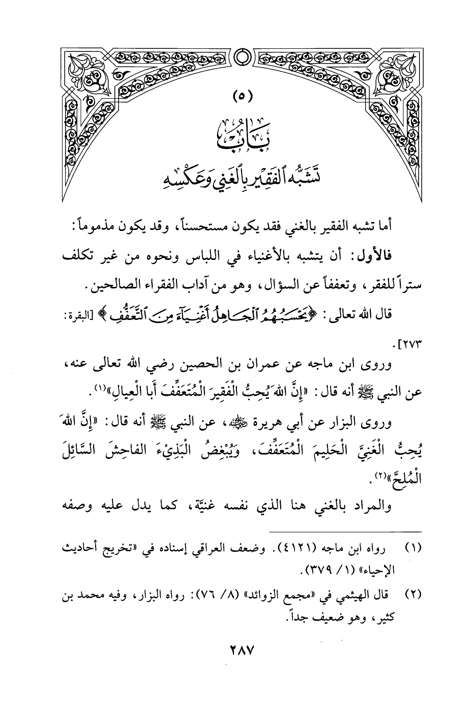 قال الله تعالى: {يَحْسَبُهُمُ الْجَاهِلُ أَغْنِيَاءَ مِنَ التَّعَفُّفِ} [البقرة: 273].
