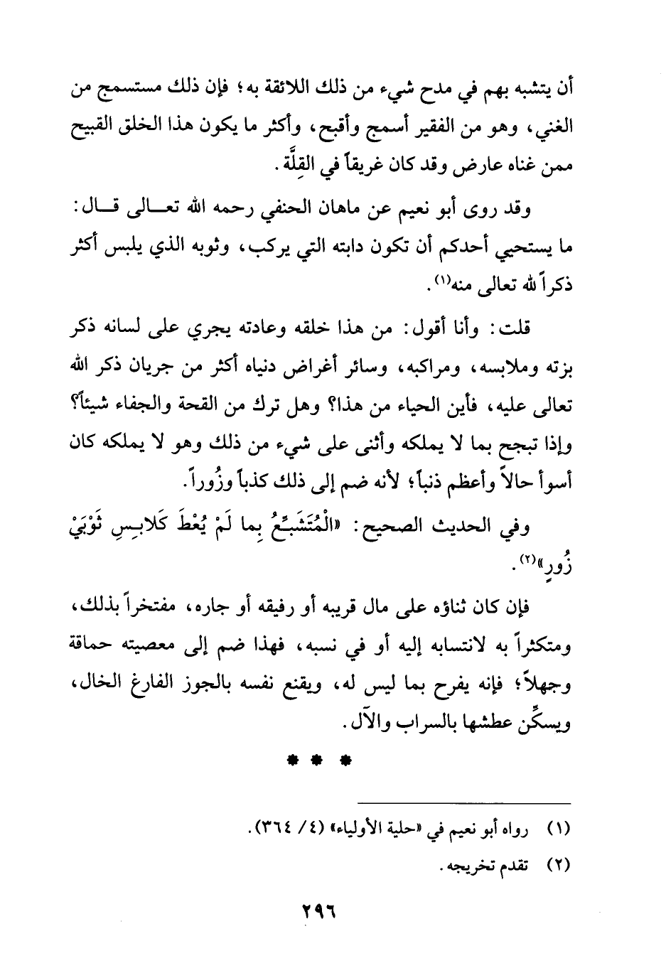 وفي الحديث الصحيح: "الْمُتَشَبعُ بِما لَمْ يُعْطَ كَلابِسِ ثَوْبَيْ زُورٍ" (¬2).