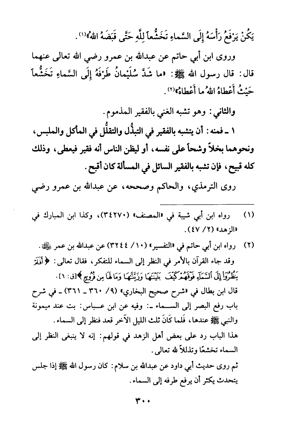 ثم روى حديث أبي داود عن عبد الله بن سلام: كان رسول الله - صلى الله عليه وسلم - إذا جلس يتحدث يكثر أن يرفع طرفه إلى السماء.