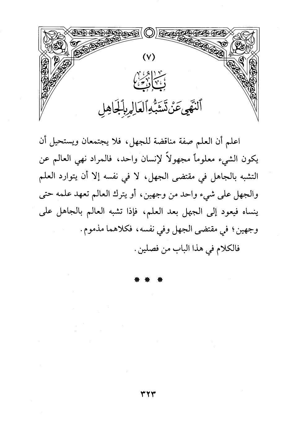 (7) بَابُ النَّهي عَنْ تَشَبُّهِ العَالِمِ باِلجَاهِلِ