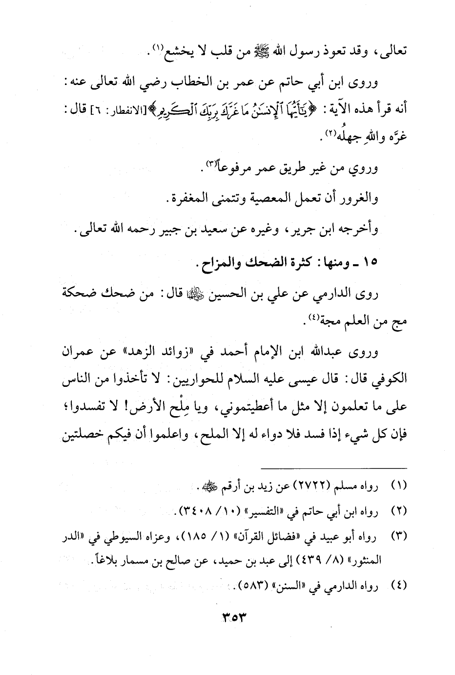 وروى ابن أبي حاتم عن عمر بن الخطاب رضي الله تعالى عنه: أنه قرأ هذه الآية: {يَا أَيُّهَا الْإِنْسَانُ مَا غَرَّكَ بِرَبِّكَ الْكَرِيمِ} [الانفطار: 6] قال: غرَّه واللهِ جهلُه (¬2).