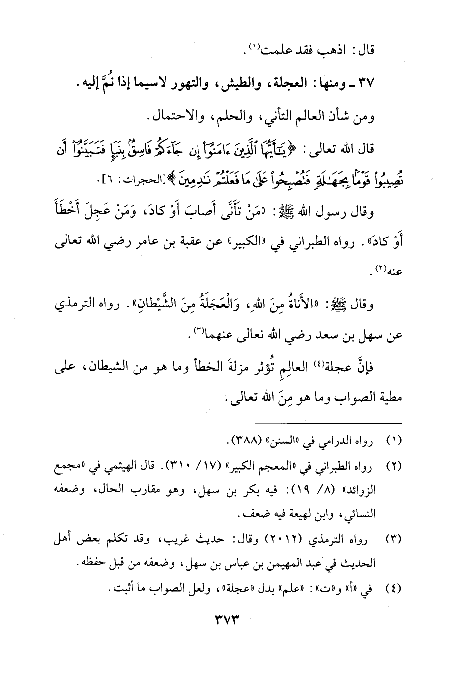 37 - ومنها: العجلة، والطيش، والتهور لاسيما إذا نُمَّ إليه.