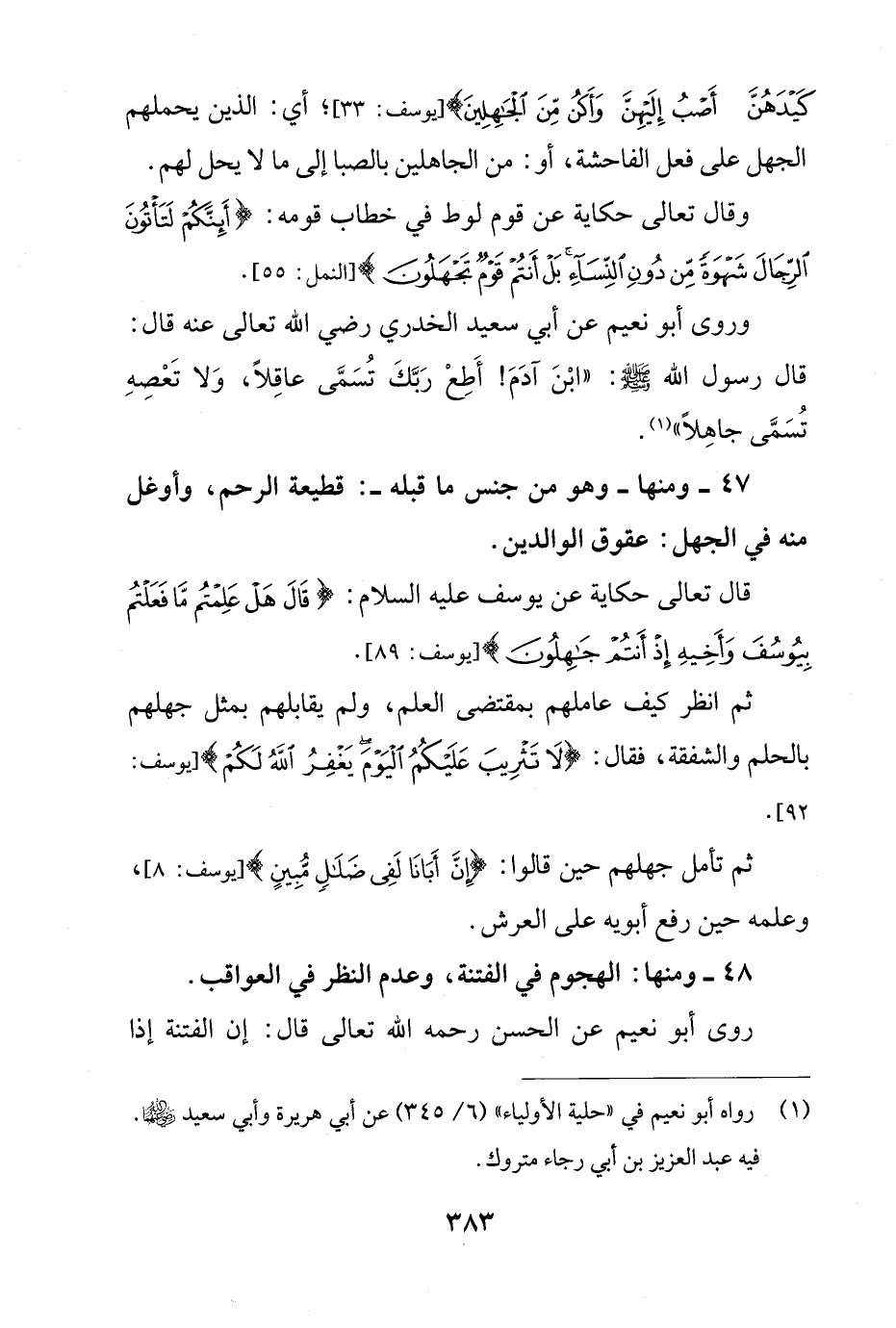 47 - ومنها - وهو من جنس ما قبله -: قطيعة الرحم، وأوغل منه في الجهل: عقوق الوالدين.