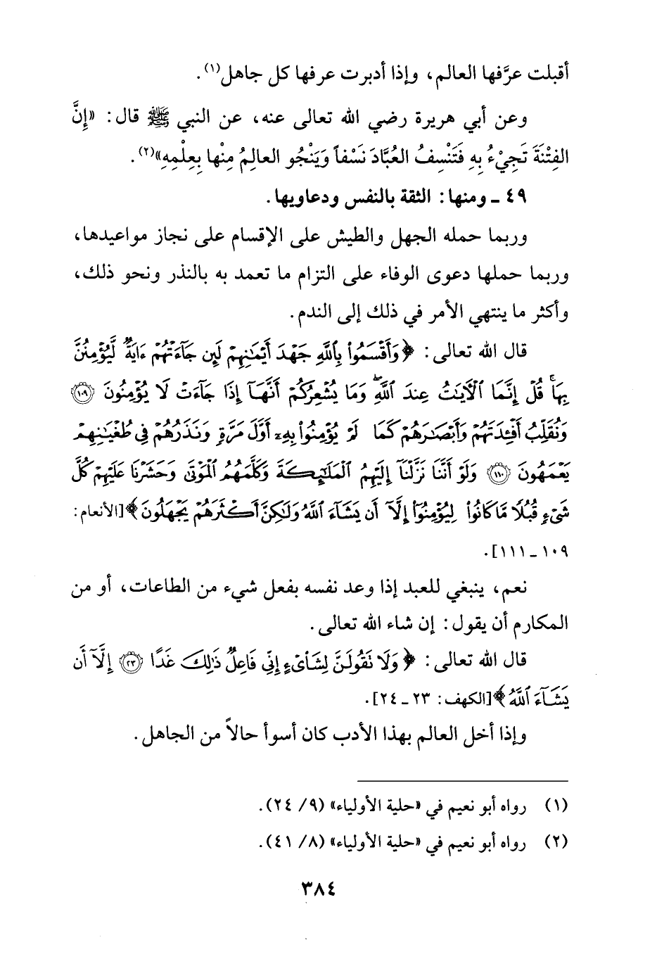 49 - ومنها: الثقة بالنفس ودعاويها.