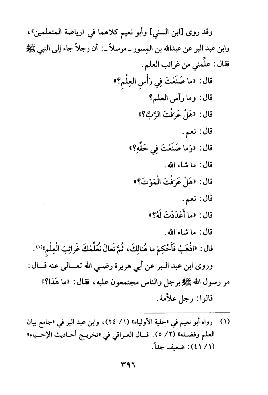 (¬1) رواه أبو نعيم في "حلية الأولياء" (1/ 24)، وابن عبد البر في "جامع بيان العلم وفضله" (2/ 5). قال العراقي في "تخريج أحاديث الإحياء" (1/ 41): ضعيف جداً.