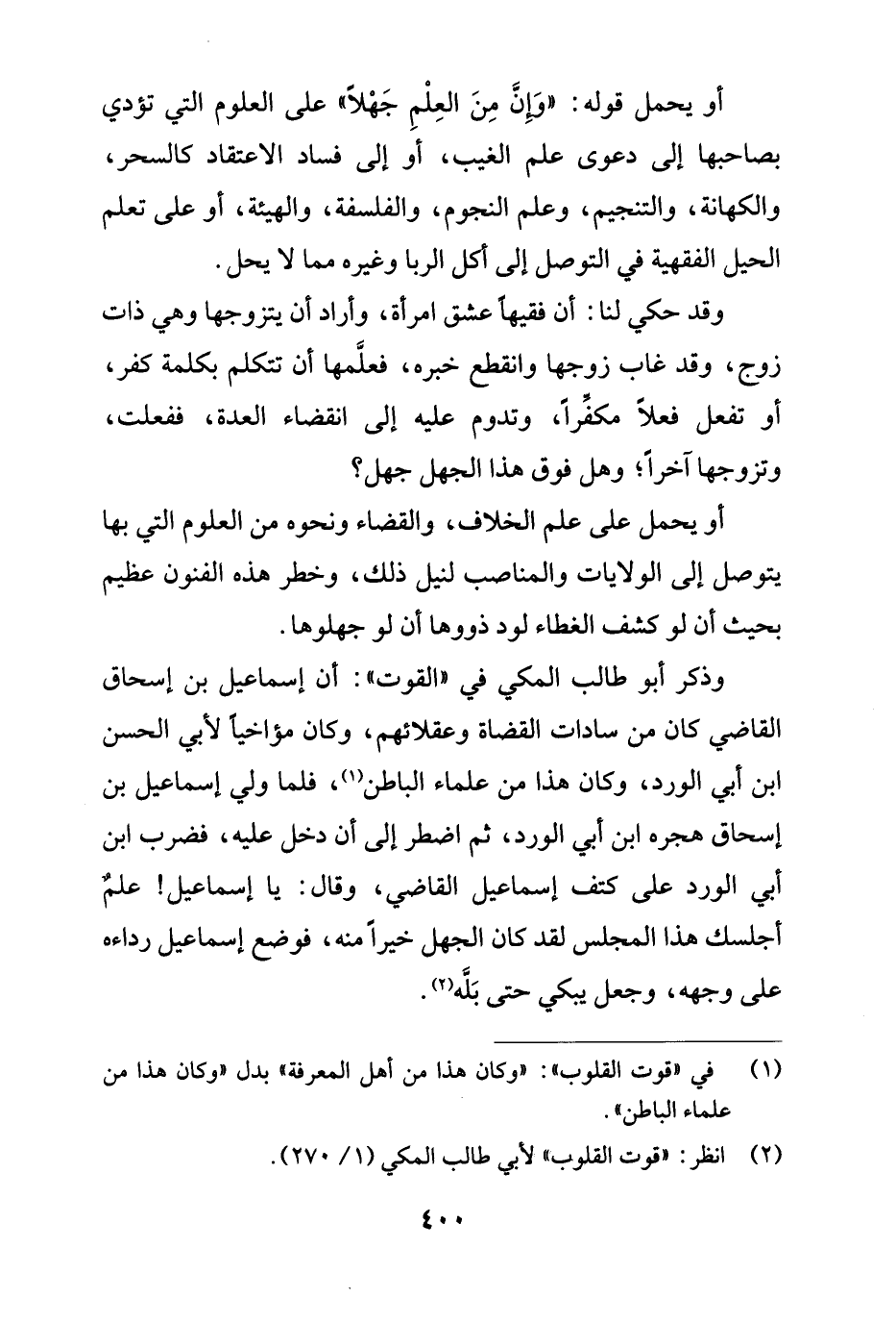 (¬1) في "قوت القلوب": "وكان هذا من أهل المعرفة" بدل "وكان هذا من علماء الباطن".