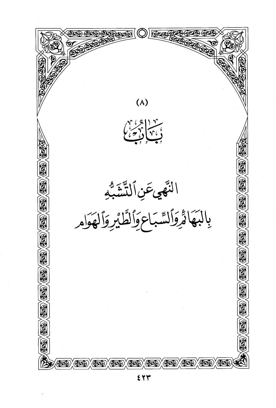 (8) بَابُ النَّهْيِ عَنِ التَّشَبُّهِ بِالبَهَائمِ وَالسِّبَاع وَالطَّيْر وَالهَوَام