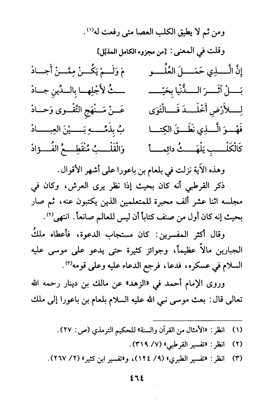 وروى الإمام أحمد في "الزهد" عن مالك بن دينار رحمه الله تعالى قال: بعث موسى نبي الله عليه السلام بلعام بن باعورا إلى ملك
