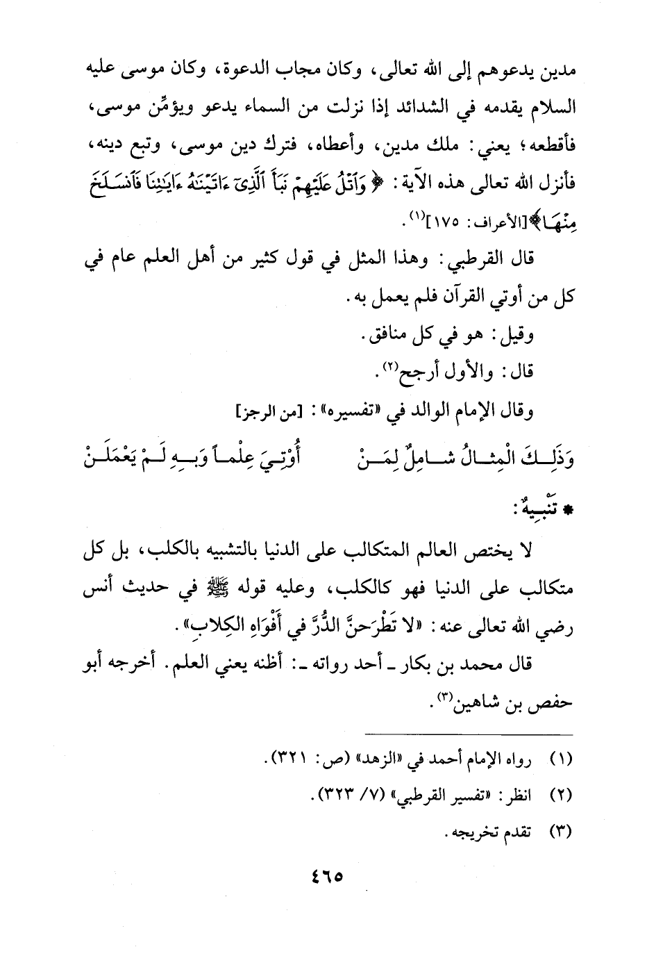 وَذَلِكَ الْمِثالُ شامِلٌ لِمَنْ ... أُوْتيَ عِلْماً وَبِهِ لَمْ يَعْمَلَنْ
