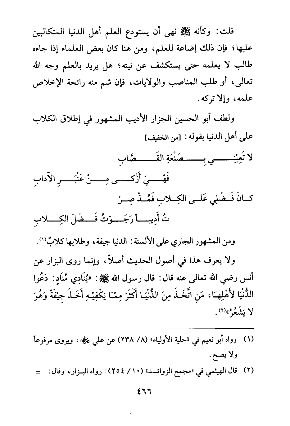 ومن المشهور الجاري على الألسنة: الدنيا جيفة، وطلابها كلابٌ (¬1).