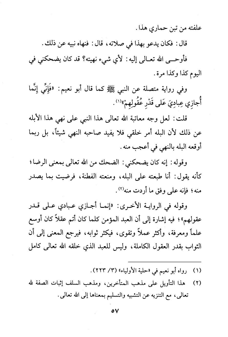 وفي رواية متصلة عن النبي - صلى الله عليه وسلم - كما قال أبو نعيم: "فَإِنِّي إِنَّما أُجازِي عِبادِيَ عَلى قَدْرِ عُقُولهِمْ" (¬1).