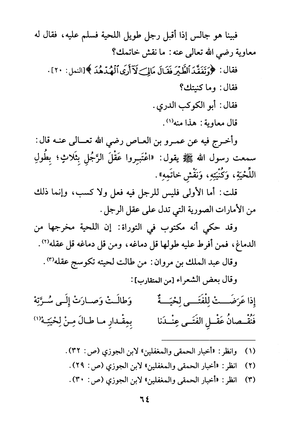 (¬3) انظر: "أخبار الحمقى والمغفلين" لابن الجوزي (ص: 30).