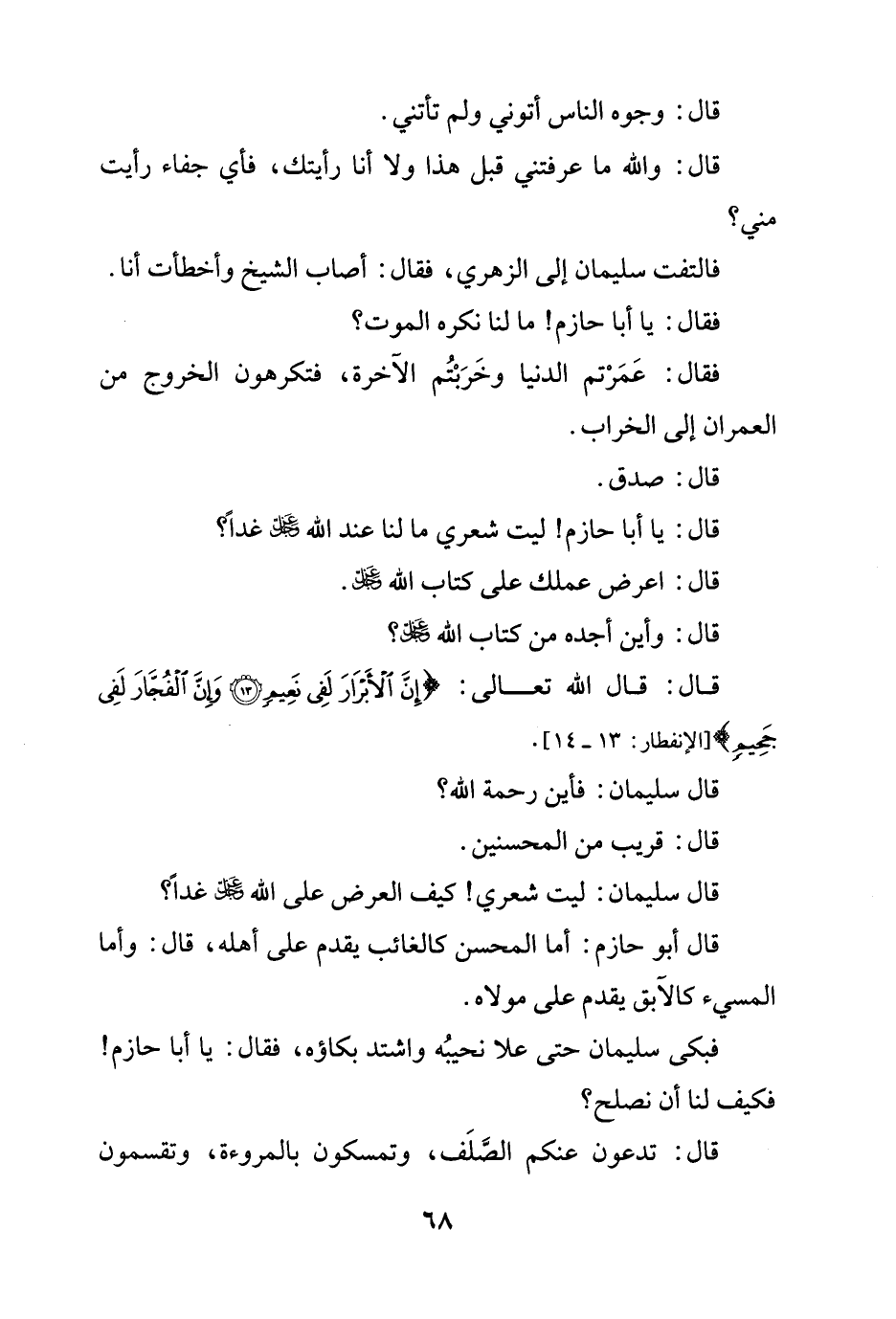 قال: قال الله تعالى: {إِنَّ الْأَبْرَارَ لَفِي نَعِيمٍ (13) وَإِنَّ الْفُجَّارَ لَفِي جَحِيمٍ} [الإنفطار: 13 - 14].