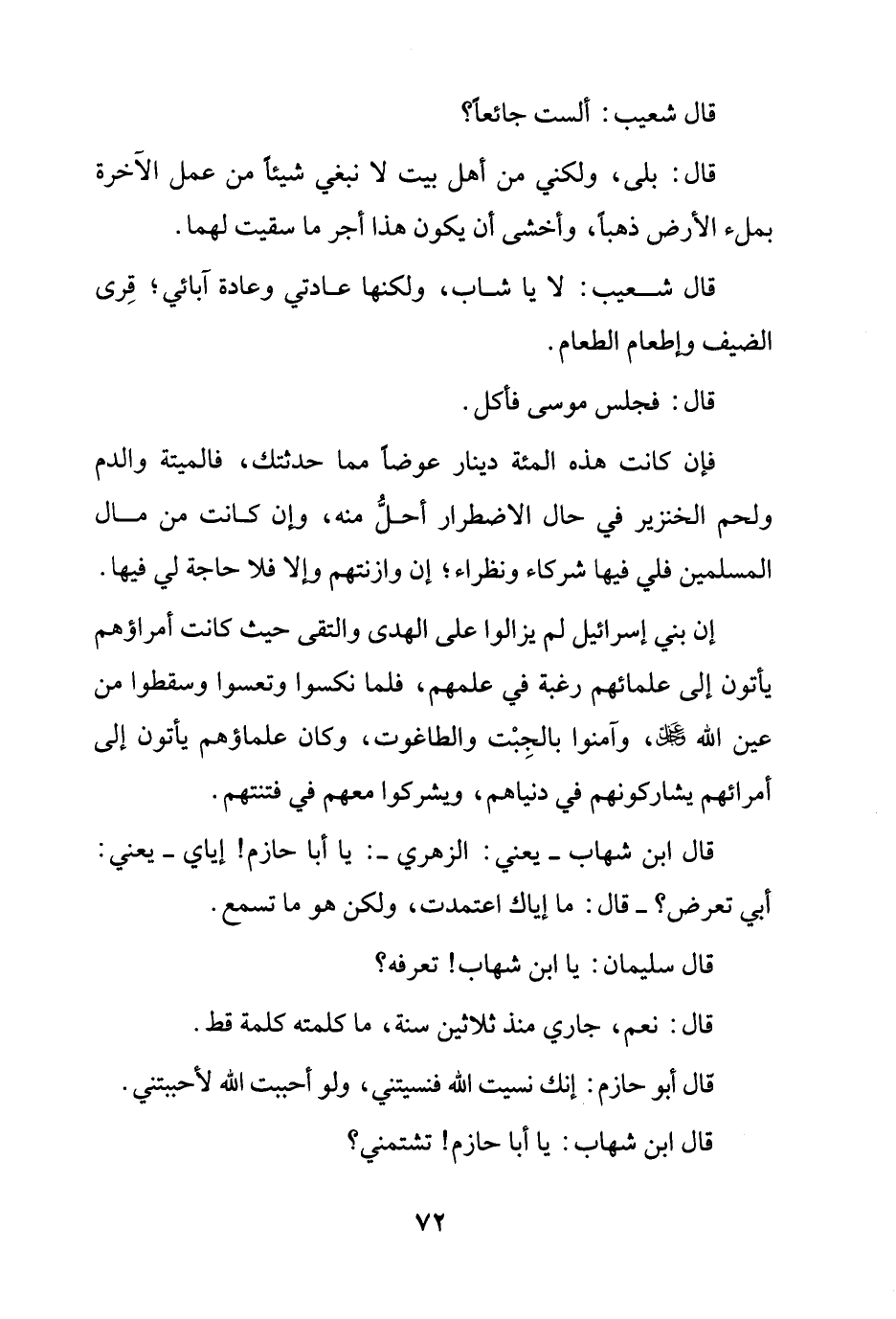 قال شعيب: لا يا شاب، ولكنها عادتي وعادة آبائي؛ قِرى الضيف وإطعام الطعام.