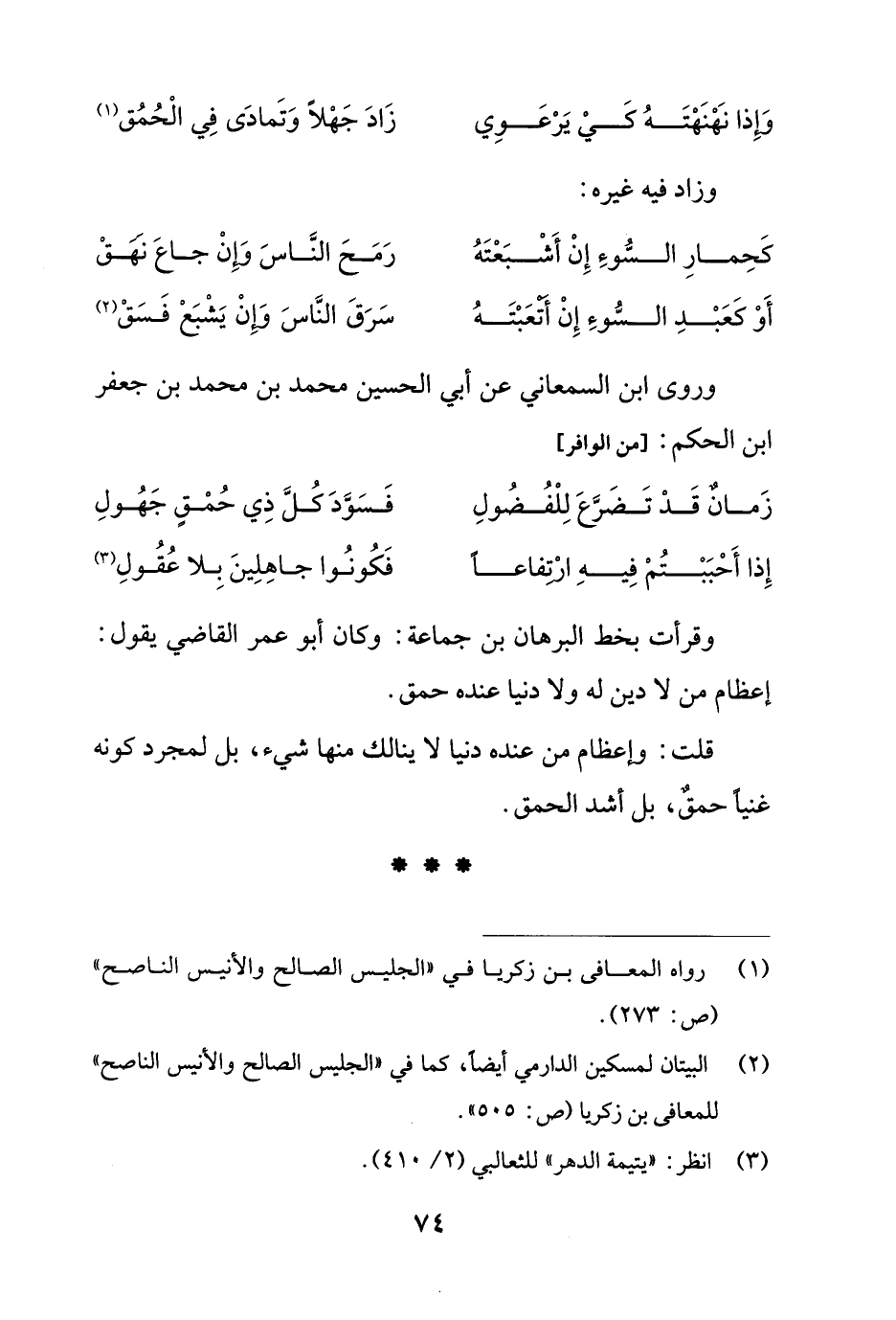 وَإِذا نَهْنَهْتَهُ كَيْ يَرْعَوِي ... زَادَ جَهْلاً وَتَمادَى فِي الْحُمُق (¬1)