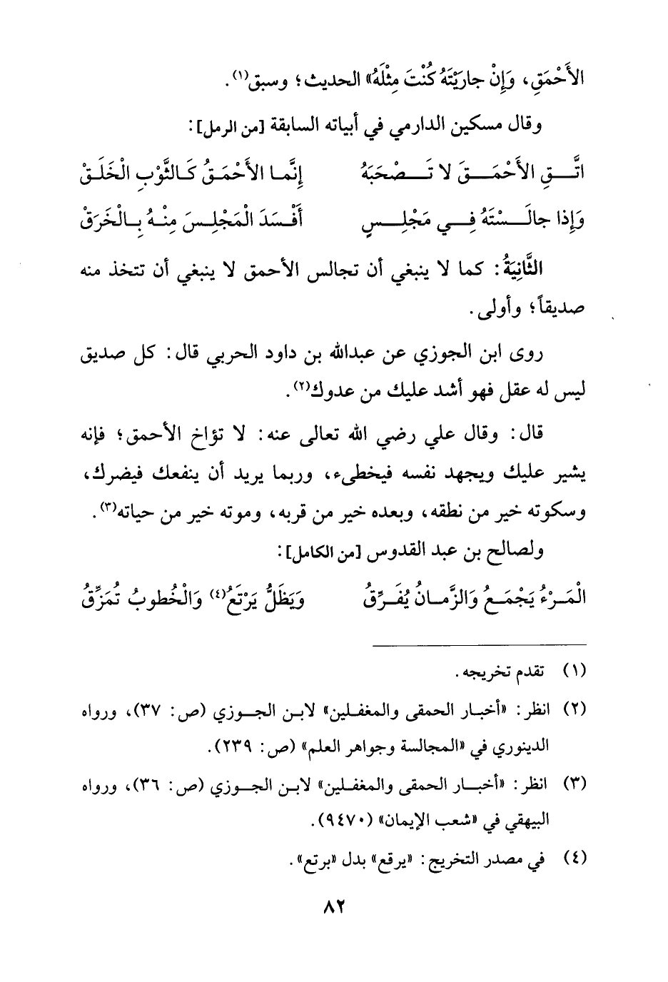 (¬3) انظر: "أخبار الحمقى والمغفلين" لابن الجوزي (ص: 36)، ورواه البيهقي في "شعب الإيمان" (9470).