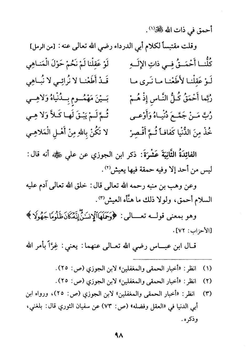 (¬2) انظر: "أخبار الحمقى والمغفلين" لابن الجوزي (ص: 25).