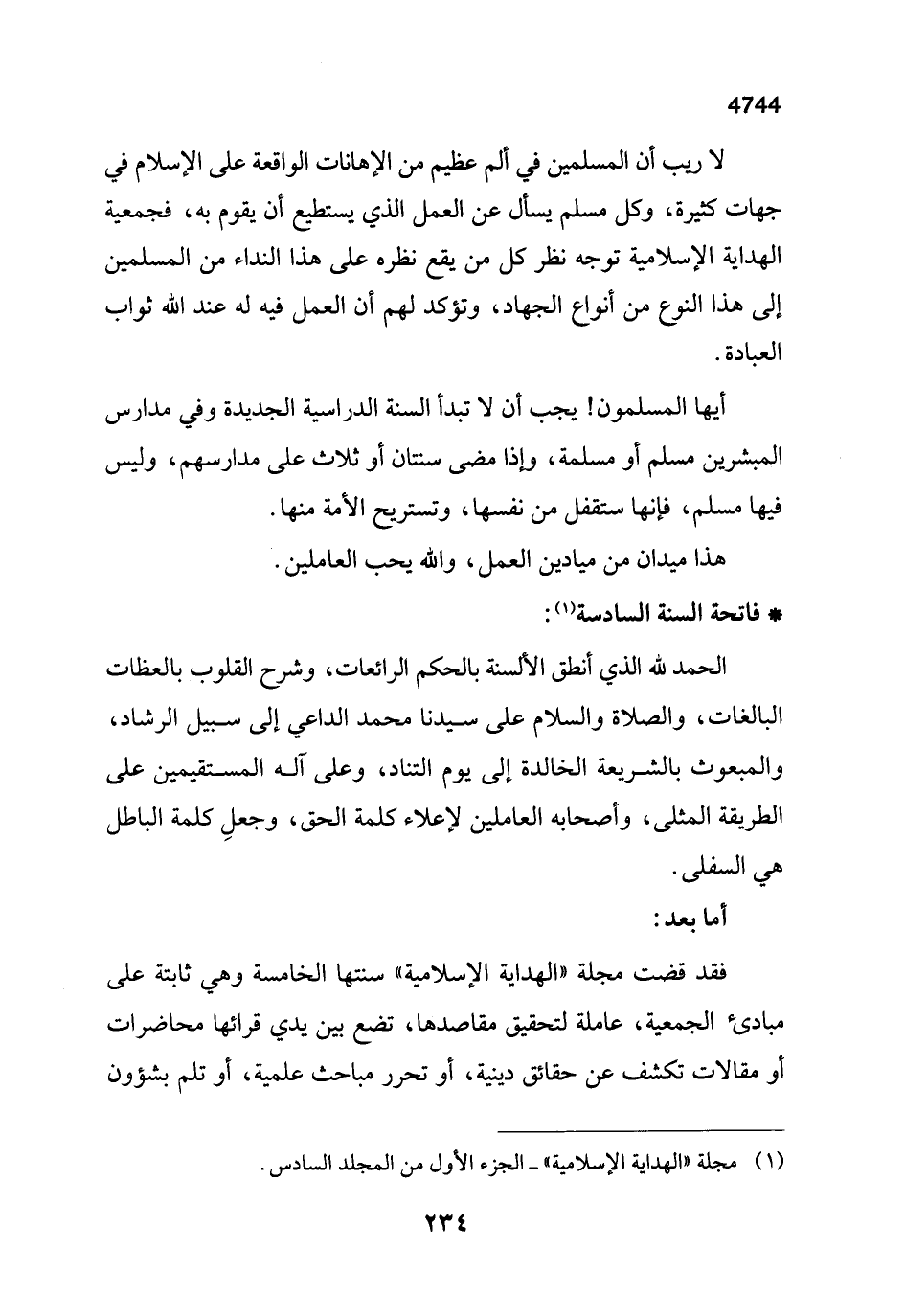 (¬1) مجلة "الهداية الإِسلامية" - الجزء الأول من المجلد السادس.