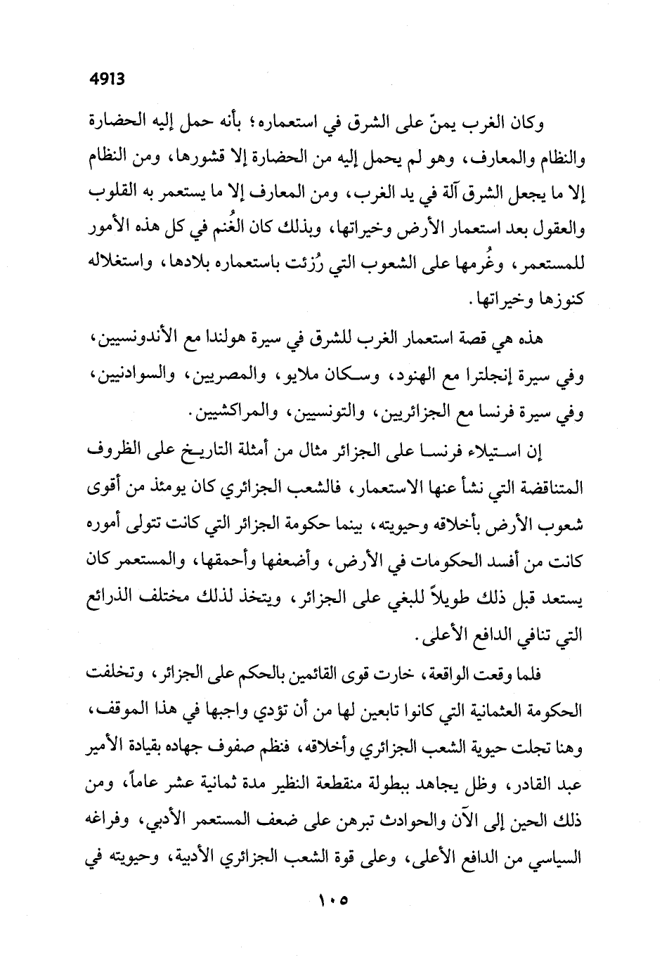 هذه هي قصة استعمار الغرب للشرق في سيرة هولندا مع الأندونسيين، وفي سيرة إنجلترا مع الهنود، وسكان ملايو، والمصريين، والسوادنيين، وفي سيرة فرنسا مع الجزائريين، والتونسيين، والمراكشيين.