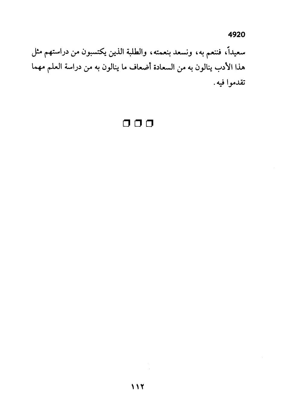 سعيداً، فننعم به، ونسعد بنعمته، والطلبة الذين يكتسبون من دراستهم مثل هذا الأدب ينالون به من السعادة أضعاف ما ينالون به من دراسة العلم مهما تقدموا فيه.