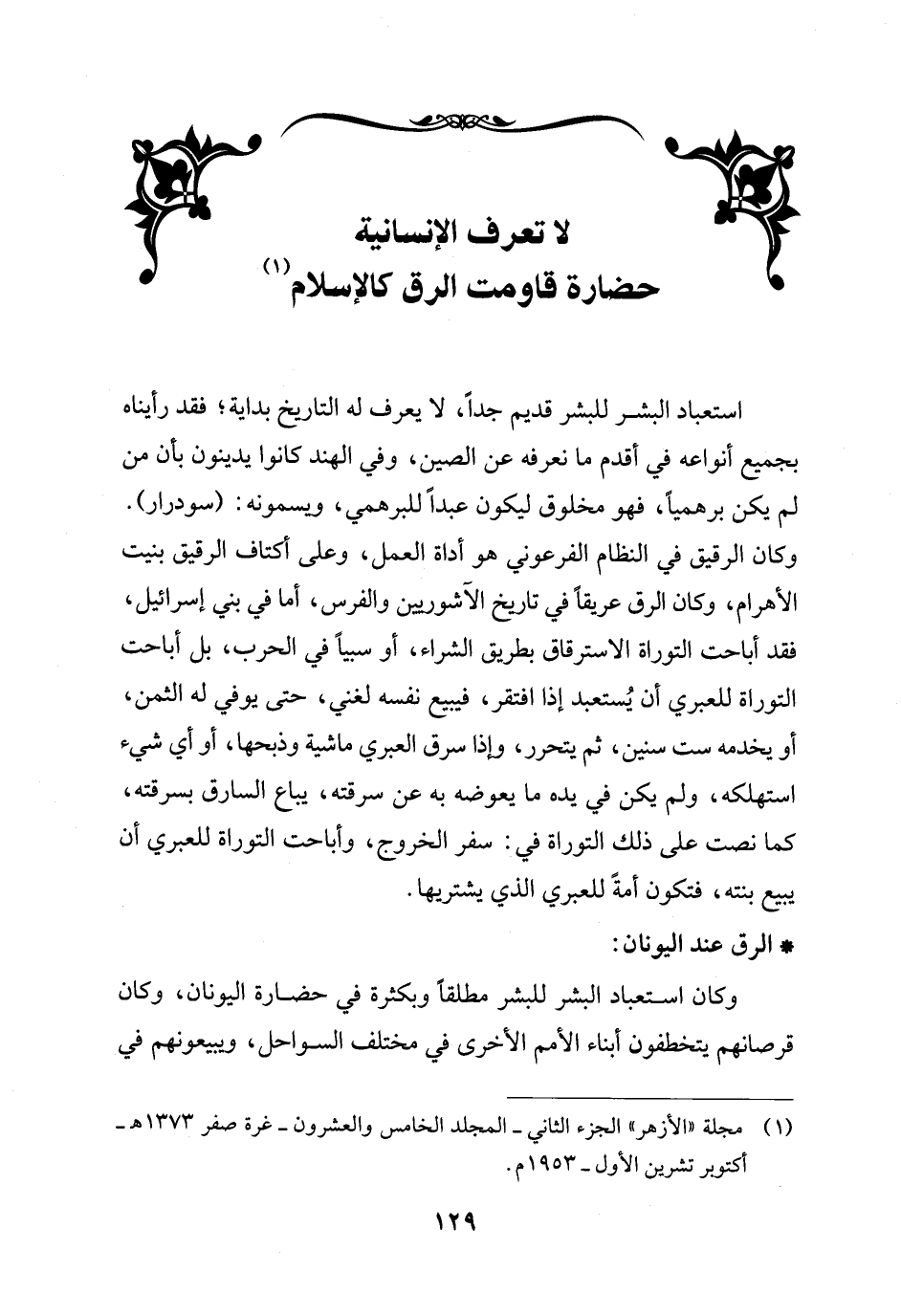 (¬1) مجلة "الأزهر" الجزء الثاني -المجلد الخامس والعشرون- غرة صفر 1373 هـ -أكتوبر تشرين الأول- 1953 م.