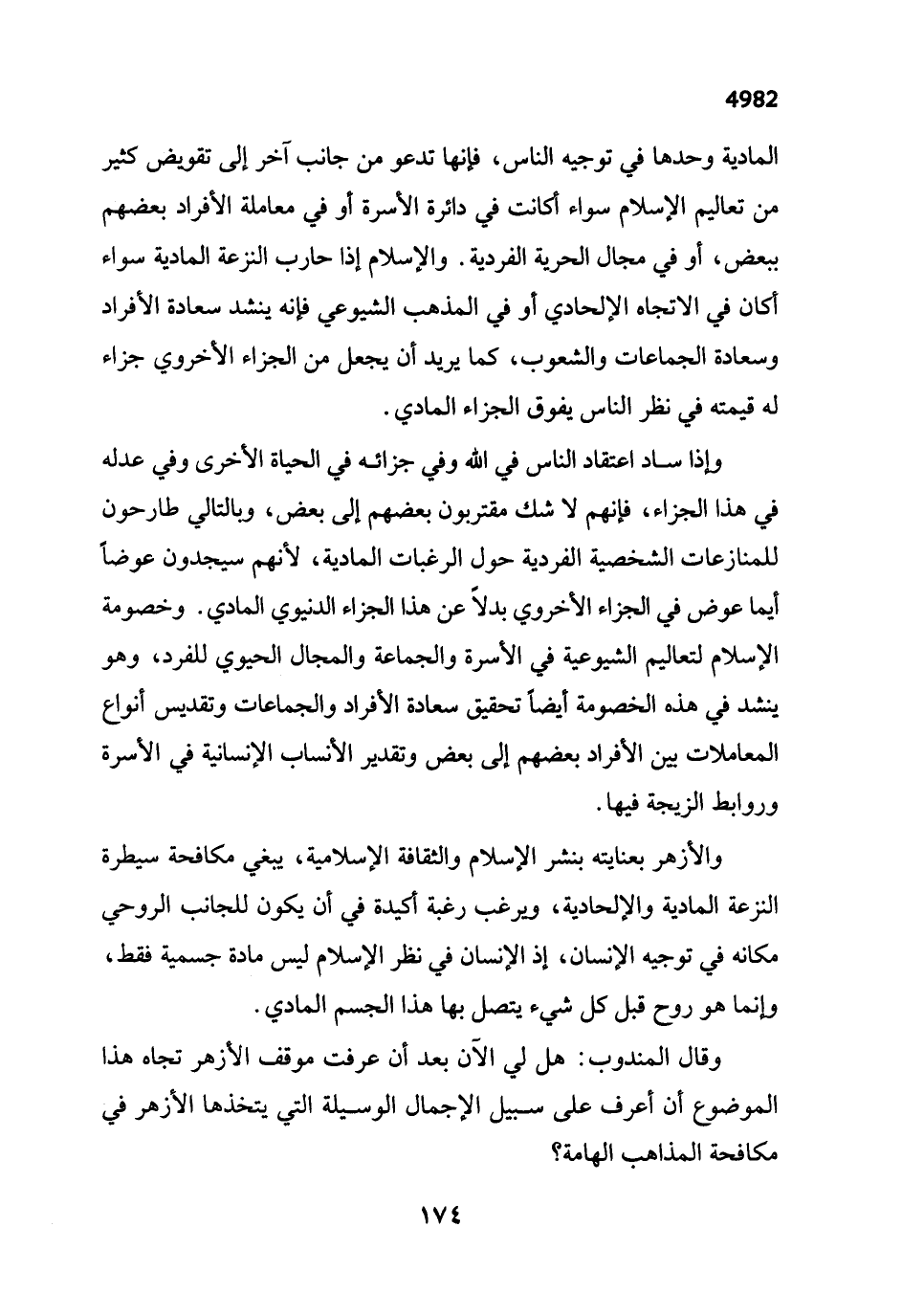 وقال المندوب: هل لي الآن بعد أن عرفت موقف الأزهر تجاه هذا الموضوع أن أعرف على سبيل الإجمال الوسيلة التي يتخذها الأزهر في مكافحة المذاهب الهامة؟