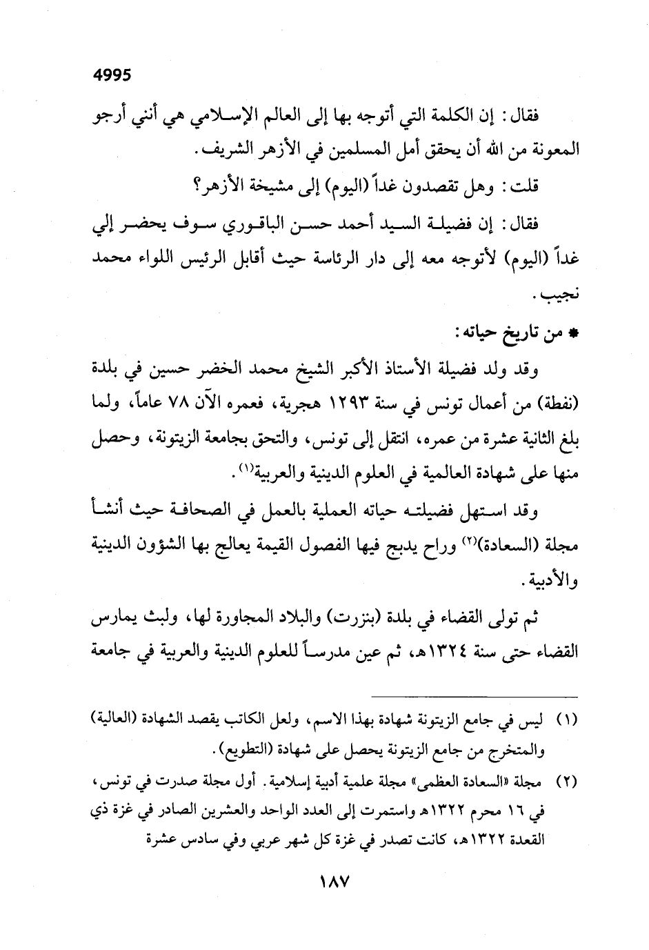 (¬1) ليس في جامع الزيتونة شهادة بهذا الاسم، ولعل الكاتب يقصد الشهادة (العالية) والمتخرج من جامع الزيتونة يحصل على شهادة (التطويع).