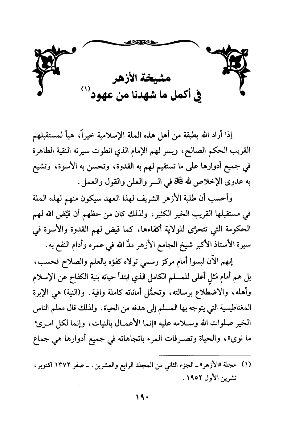 (¬1) مجلة "الأزهر" - الجزء الثاني من المجلد الرابع والعشرين.- صفر 1372 اكتوبر، تشرين الأول 1952.