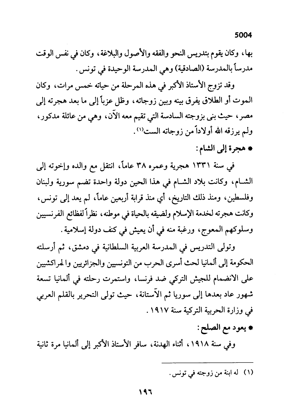 (¬1) له ابنة من زوجته في تونس.