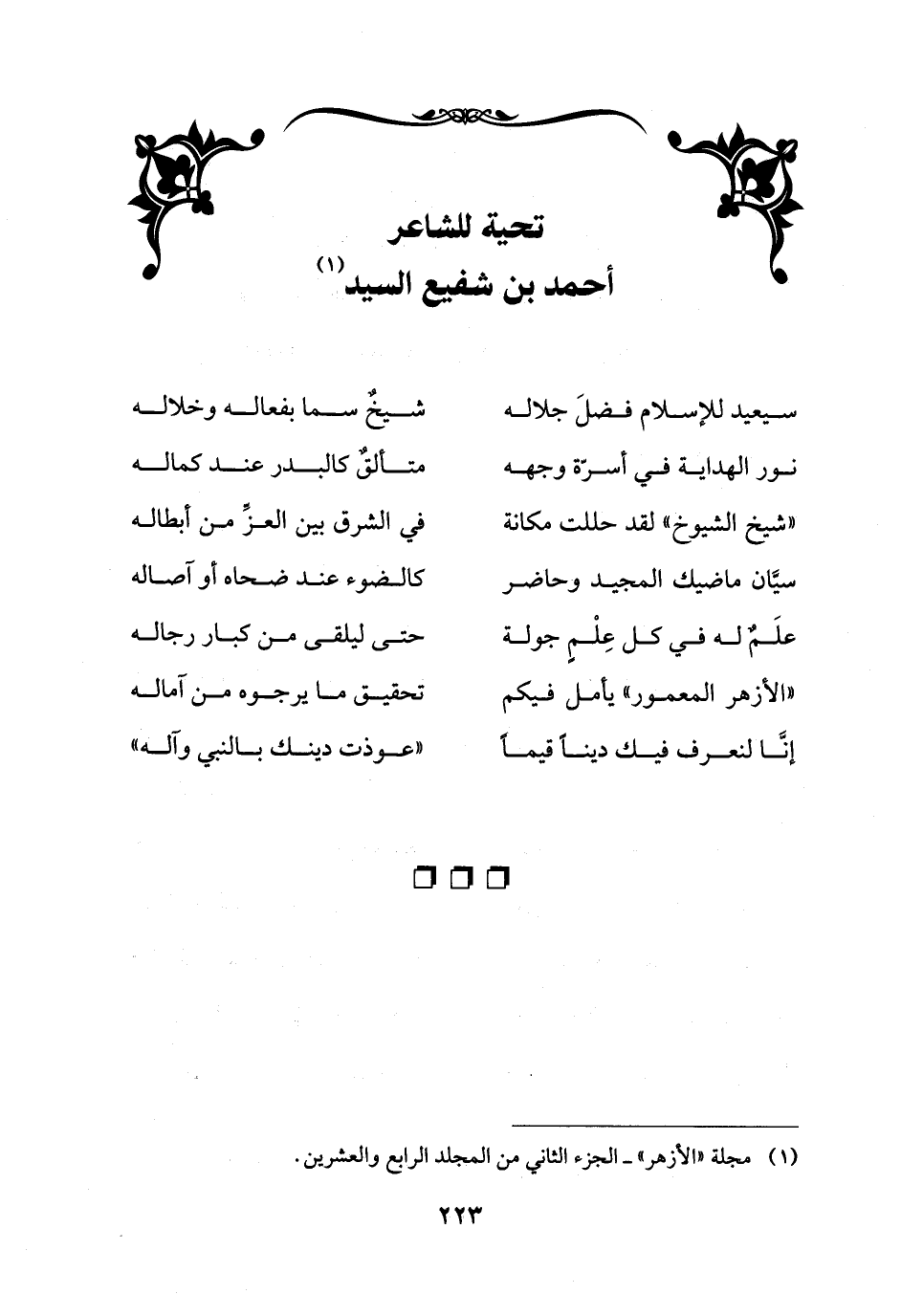 سيعيد للإسلام فضلَ جلاله ... شيخٌ سما بفعاله وخلاله