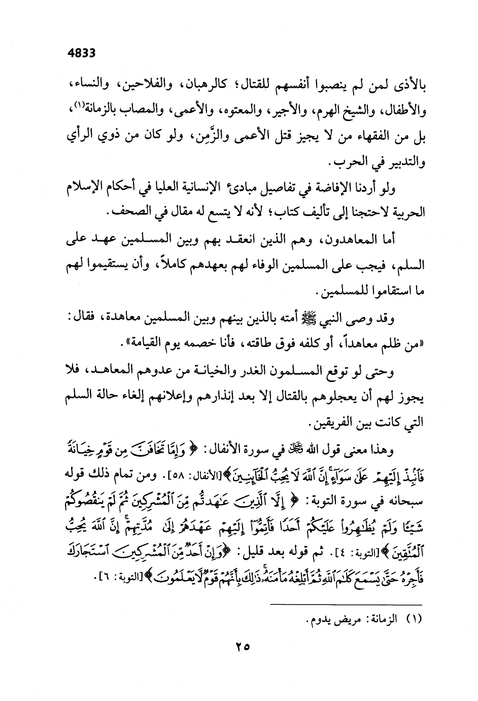 ولو أردنا الإفاضة في تفاصيل مبادئ الإنسانية العليا في أحكام الإسلام الحربية لاحتجنا إلى تأليف كتاب؛ لأنه لا يتسع له مقال في الصحف.