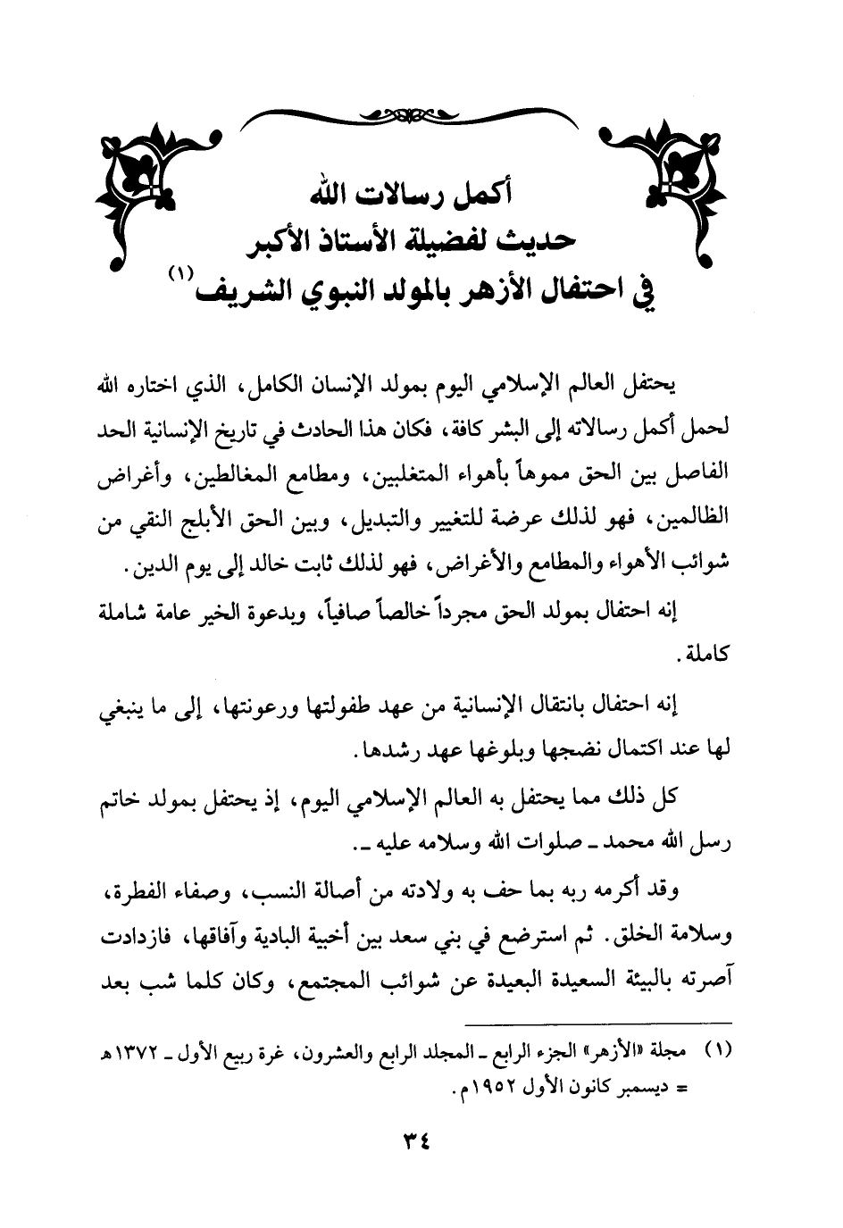(¬1) مجلة "الأزهر" الجزء الرابع -المجلد الرابع والعشرون، غرة ربيع الأول-1372 هـ = ديسمبر كانون الأول 1952 م.
