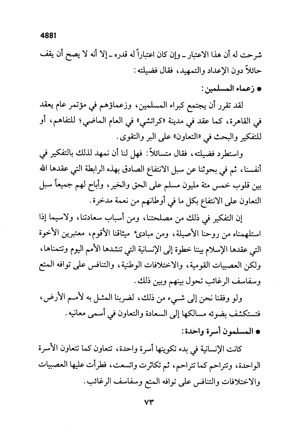 لقد تقرر أن يجتمع كبراء المسلمين، وزعماؤهم في مؤتمر عام يعقد في القاهرة، كما عقد في مدينة "كراتشي" في العام الماضي؛ للتفاهم، أو للتفكير والبحث في "التعاون" على البر والتقوى.