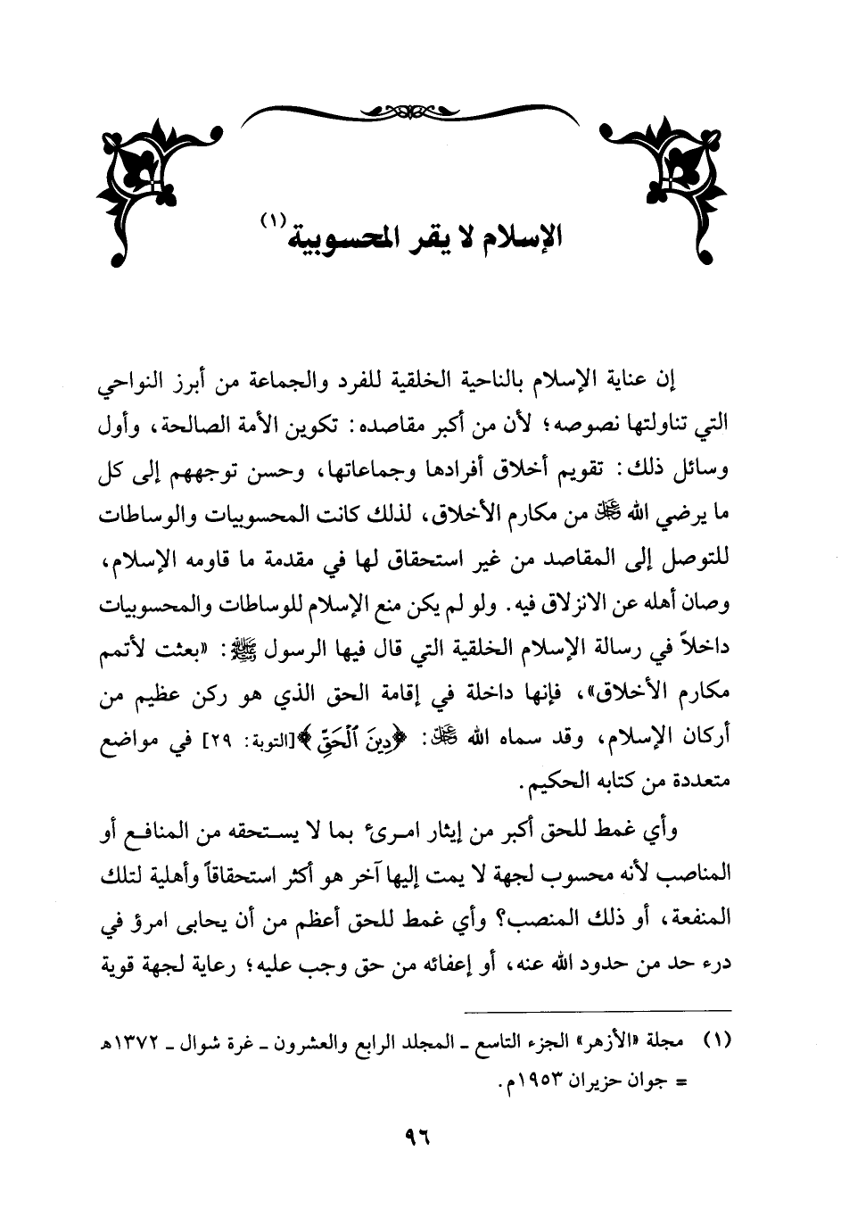 (¬1) مجلة "الأزهر" الجزء التاسع -المجلد الرابع والعشرون- غرة شوال- 1372 هـ = جوان حزيران 1953 م.