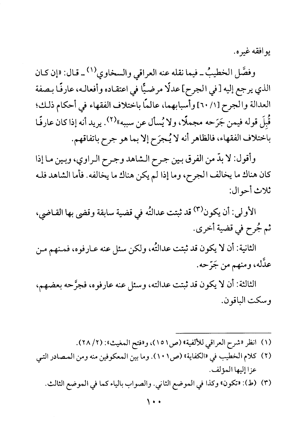 وأقول: لا بدّ من الفرق بين جرح الشاهد وجرح الراوي، وبين ما إذا كان هناك ما يخالف الجرح، وما إذا لم يكن هناك ما يخالفه. فأما الشاهد فله ثلاث أحوال: