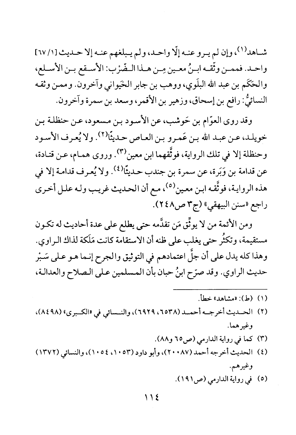 وقد روى العوّام بن حَوشب، عن الأسود بن مسعود، عن حنظلة بن خويلد، عن عبد الله بن عَمرو بن العاص حديثًا (¬٢). ولا يُعرف الأسود وحنظلة إلا في تلك الرواية، فوثَّقهما ابن معين (¬٣). وروى همام، عن قتادة، عن قدامة بن وَبَرة، عن سمرة بن جندب حديثًا (¬٤). ولا يُعرف قدامة إلا في هذه الرواية، فوثَّقه ابن معين (¬٥)، مع أن الحديث غريب وله علل أخرى راجع "سنن البيهقي" (ج ٣ ص ٢٤٨).