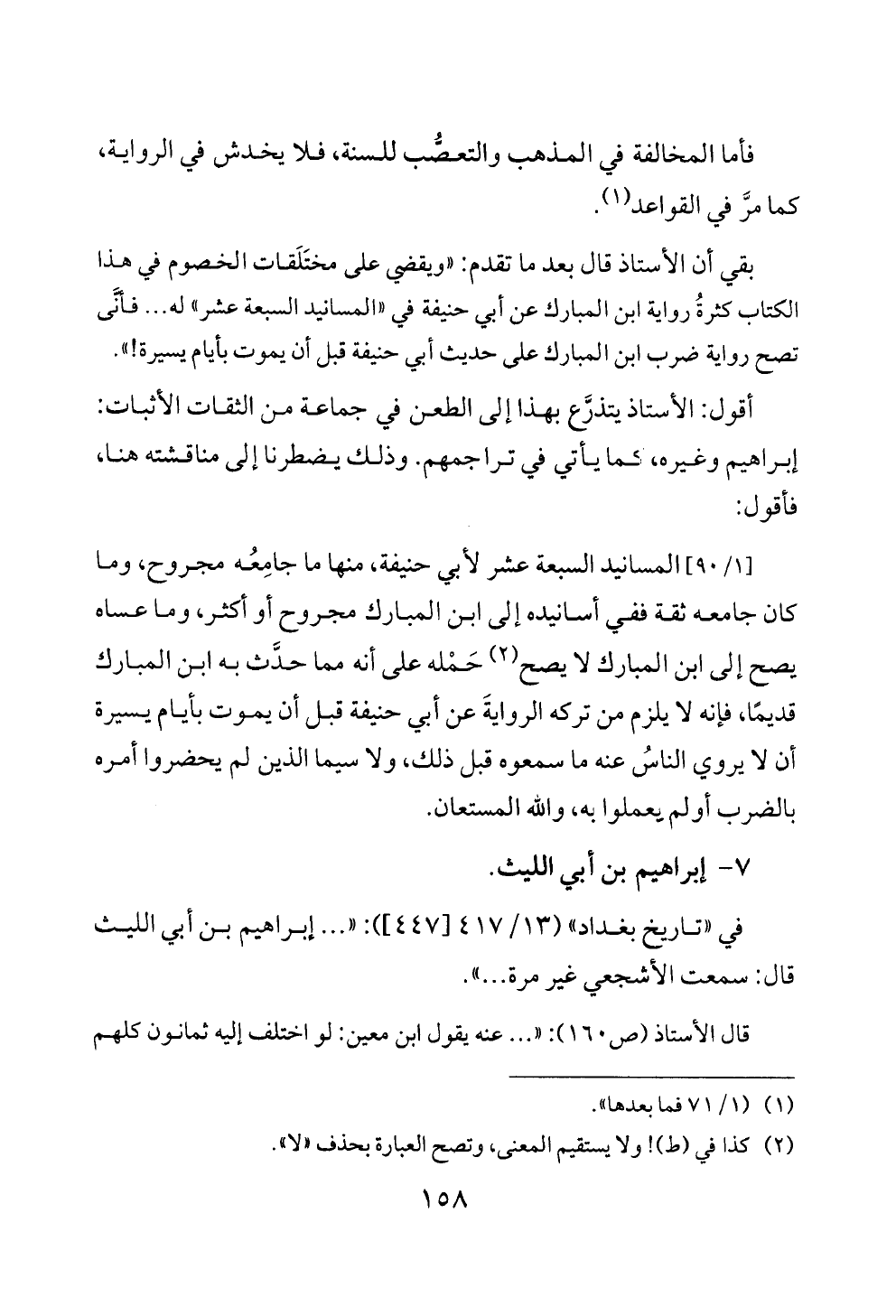 أقول: الأستاذ يتذرَّع بهذا إلى الطعن في جماعة من الثقات الأثبات: إبراهيم وغيره، كما يأتي في تراجمهم. وذلك يضطرنا إلى مناقشته هنا، فأقول: