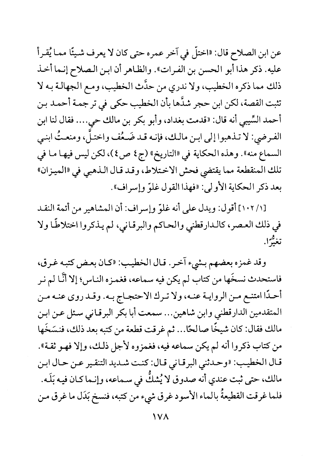 [١/ ١٠٢] أقول: ويدل على أنه غلوّ وإسراف: أن المشاهير من أئمة النقد في ذلك العصر، كالدارقطني والحاكم والبرقاني، لم يذكروا اختلاطًا ولا تغيُّرًا.